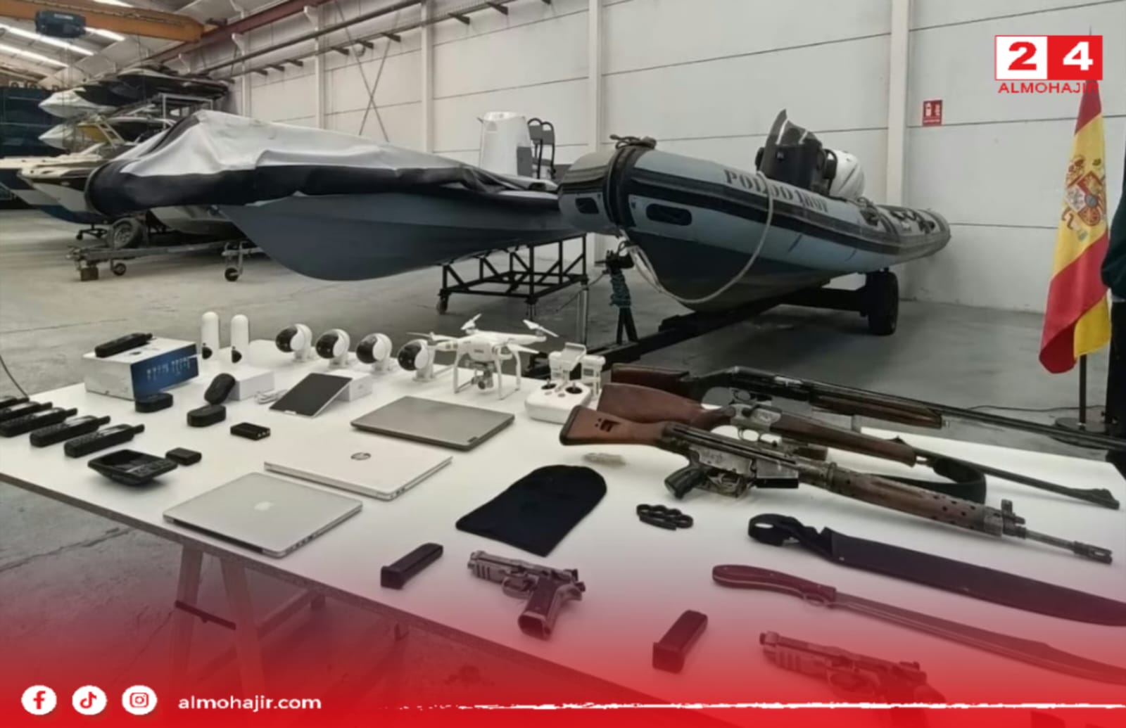وخلال هذه العملية، التي تمت بتنسيق مع أجهزة أوروبية من بينها “يوروبول”، تم حجز 23 زورقا، إلى جانب أسلحة نارية وبيضاء، وسيارات فاخرة، ومبالغ مالية تتجاوز 80 ألف يورو، فضلا عن كميات من المخدرات، شملت القنب الهندي والتبغ المهرب.